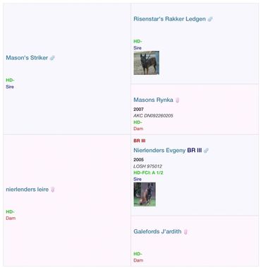 Orthopedic Foundation for Animals (OFA) Testing Score Good for both of Bronx's parents.